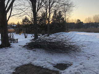 Also - my husband had an arborist come out to trim one of our trees on Friday that had branches getting to close to our house - more materials for my stick furniture!